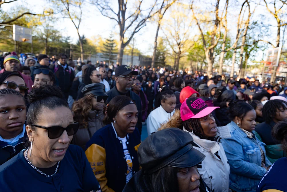 Hundreds of Queens residents and community members mourned 15-year-old Jaden Pierre, who was killed at Roy Wilkins Park last week. Eagle photo by Ryan Schwach